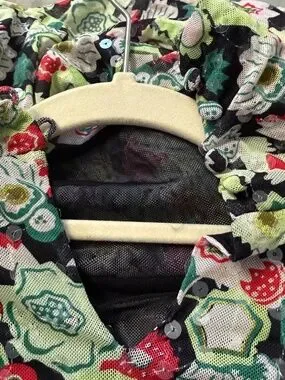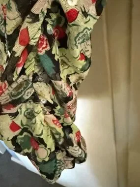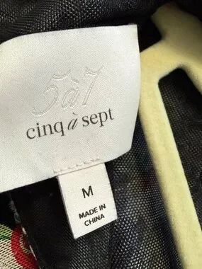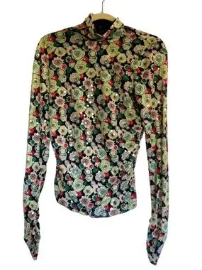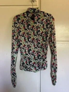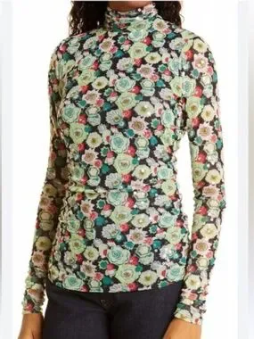 Cinq a Sept Floral Sequin Ruched Funnel Neck Mesh Top Size Medium