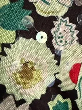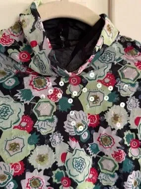Cinq a Sept Floral Sequin Ruched Funnel Neck Top Size Medium