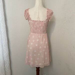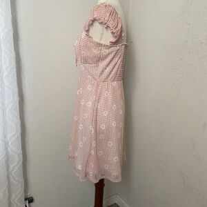 Y2K No Boundaries Pink Gingham Babydoll Dress Floral Milkmaid Cottagecore Size L