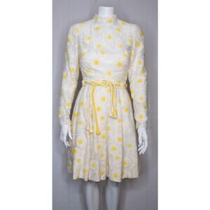 VINTAGE '60s Sunshine Daisies Lace Mockneck Long Sleeve Mini Dress SMALL