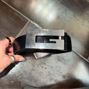 Vintage Gucci Black Leather Belt with Silver G Buckle