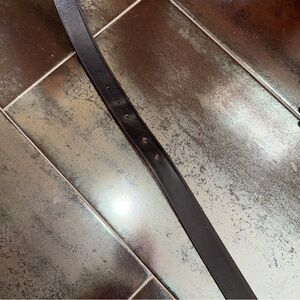 Sleek black leather belt with signature G-shaped silver buckle. Minimal, refined look for versatile styling. High-shine metal buckle adds a modern edge. Classic leather finishes for everyday wear.