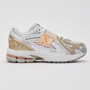 New Balance White, Peach & Silver Mesh Athletic Sneakers