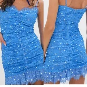 For Love And Lemons Samira Blue Lace Mini Dress size medium NWT