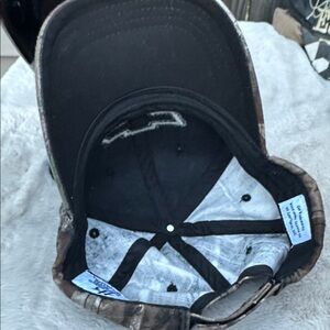 Stylish camouflage cap featuring a distinctive logo. Perfect for outdoor enthusiasts.