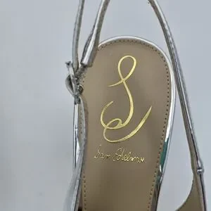 Sam Edelman Silver Pointed Toe Slingback Kitten Heels
