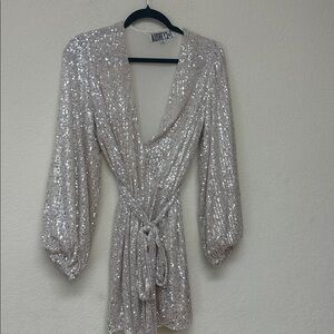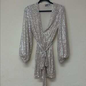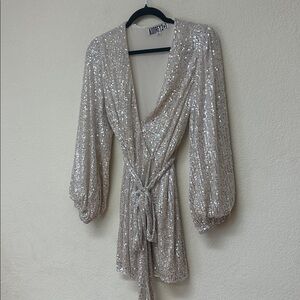 Audrey 3+1 womans Silver Sequin Wrap mini dress Size S