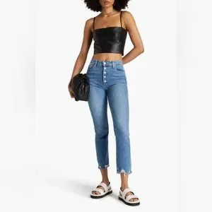Paige Anthropologie High Rise Sarah Straight Distressed Cropped Jeans Button Fly