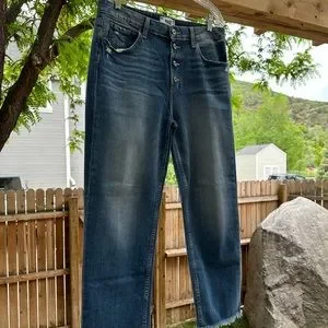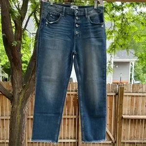 Paige Anthropologie High Rise Sarah Straight Cropped Jeans Button Fly size 31