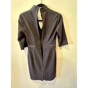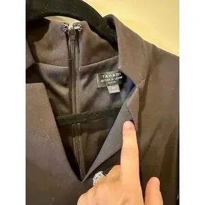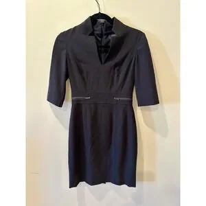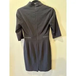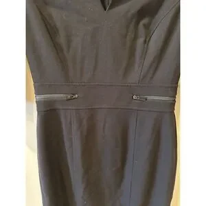Tahari ASL Petite Sz 0 Classic Black LBD Sheath Dress Zipper Detail Bi-Stretch