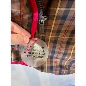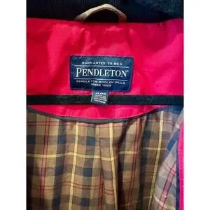 Red Pendleton Rain Anorak Jacket Womens in size XL, brand new with SOME of the tags. Red outside, plaid-lined, full zip with packable hood.