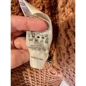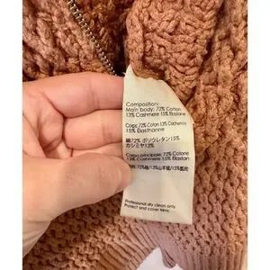 3.1 Phillip Lim Tan Cotton + Cashmere Cableknit Chunky Sweater 1/4 Zip Sz M LUX