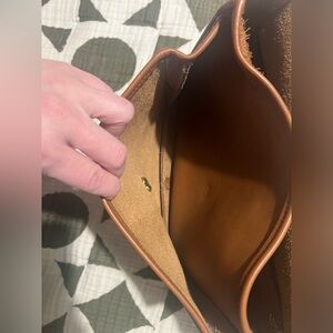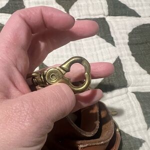 Great overall condition! Just look at those natural stretch marks and stations on the back! Gorgeous leather! Brass hardware. Lobster claw strap attachments. Original hangtag!