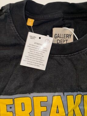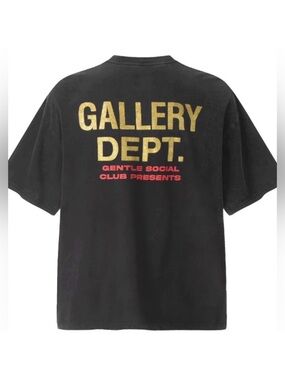 This piece features the signature Gallery Dept. aesthetic: a boxy, oversized fit with a faded, "lived-in" black wash that looks and feels like a rare vintage find. The back makes a bold statement with "GALLERY DEPT. GENTLE SOCIAL CLUB PRESENTS" in gold and red puff-style print.