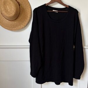 Loose oversized sweater dress in solid black quality wool blend. Long sleeves and a relaxed fit. Simple, minimalist style. Great as a pull-over dress or layered piece.