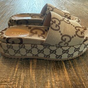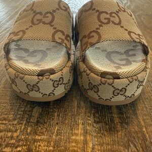 Gucci Brown/Tan GG Monogram Platform Slide Sandals size 38