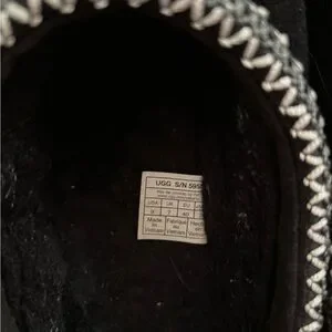 Slip-on UGG shoe with plush shearling interior. Decorative light zigzag stitching at the collar. Soft and warm style that could be worn year round! Gently used/ worn a few times with very minimal wear (see photos). Slightly big in me but a great piece to add to your shoe collection!