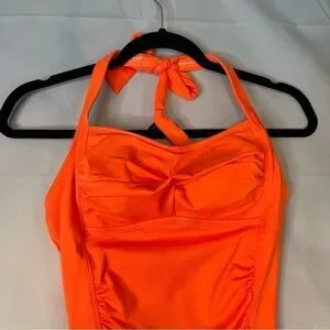 Women's One Piece Tummy Control Swimwear Boyleg Ruched Swimsuit Orange Small