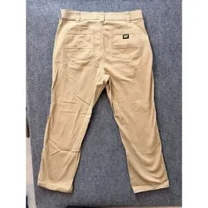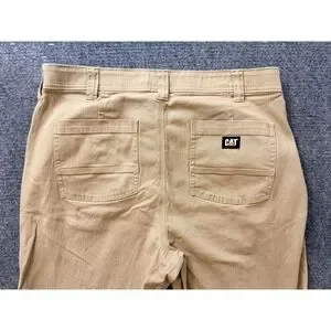 These are a pair of durable and comfortable work pants from CAT. Built for performance, they are crafted from a cotton-blend fabric with a hint of stretch for flexibility and ease of movement throughout your workday. The classic tan khaki color makes them versatile for both on-site jobs and casual, everyday wear. Featuring sturdy construction and multiple pockets, these pants are designed to be both functional and reliable.