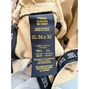 CAT 1752054 Mens Work Pants Size 36x30 Tan Khaki Stretch Cotton Workwear