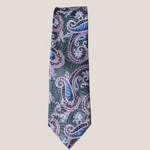 Ermenegildo Zegna Necktie 100% Italian Silk Paisley Blue Pink Grey 3.25"x61.5"