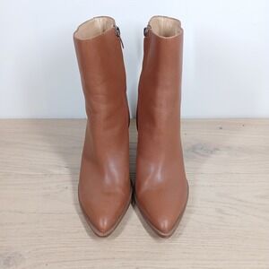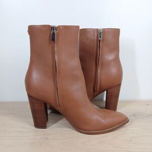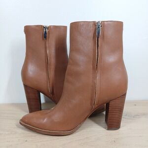 Nine West Boots Women 9.5 Tan Leather Block Heel Ankle Minimal Classic Basic