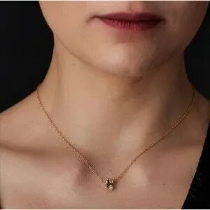 Blossom Bronze and Cubic Zirconia Pendant on 16 inch gold filled chain with lobster clasp. Pendant is .25 inches.