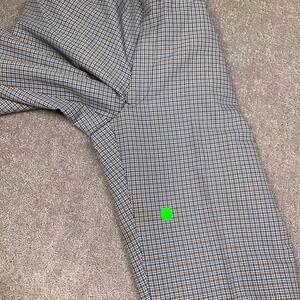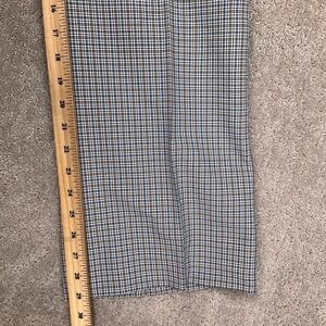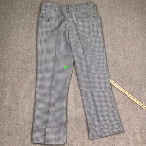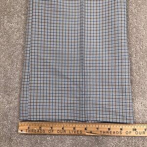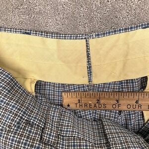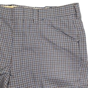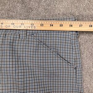 Vintage Trousers Mens 32W 29L Blue Tan Micro Check Plaid Flat Front High Rise