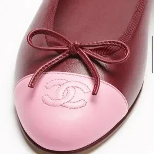 CHANEL Burgundy and Pink Leather Ballet Flats