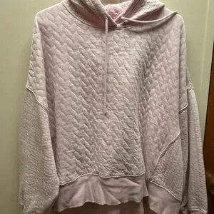 Light Pink Quilted Hoodie Sweatshirt - Women
