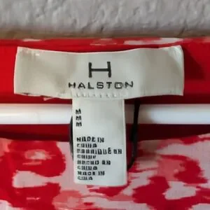 Beautiful Halston dress in coral red and white. A very versatile dress to wear for any occasion including a wedding night out or cocktail party.