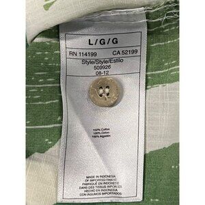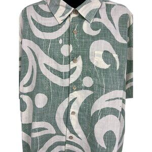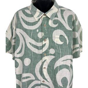 Quiksilver Size Large Mens Green White Abstract Hawaiian Aloha Button-Up Shirt