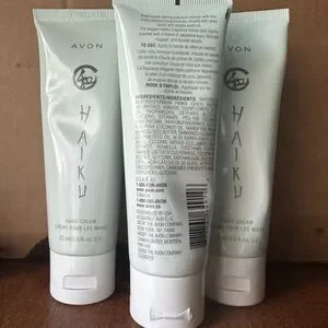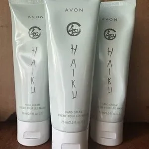 Avon Haiku hand cream in a pale mint green tube. Lightweight formula for daily hand care. Easy-to-carry tube for on-the-go use.