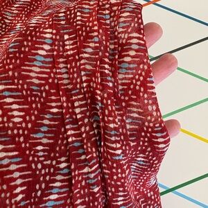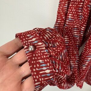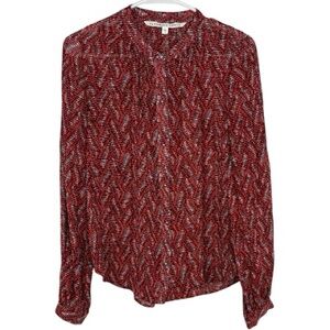 Veronica Beard Red Printed Button-Down Blouse size 6 100% silk boho EUC