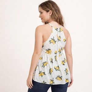 Torrid 00 Lemon Print Babydoll Tank Top Polka Dot Zip Back Cami Size 10-12