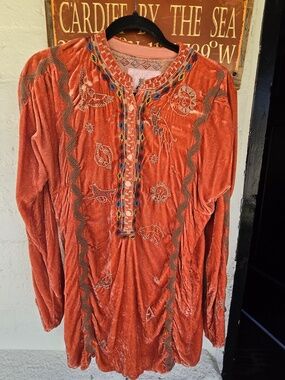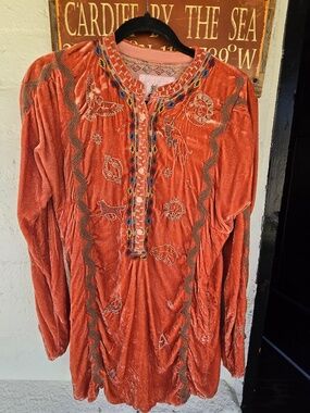 Johnny was light orange velvet tunic -top beautifully embroidered