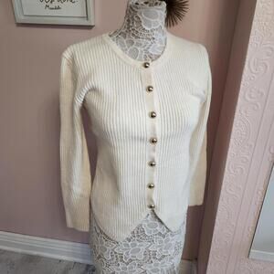 NWT Sincerely Jules cream gold button up soft sweater large