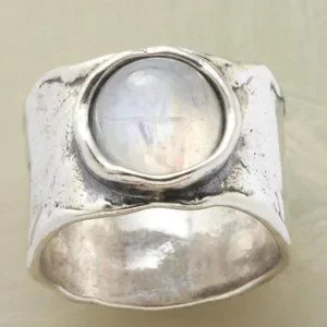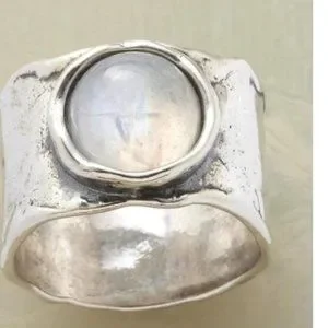 Handmade Silver Gemstone Roundel Moonstone Ring