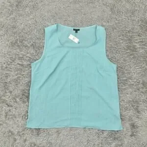 NEW Talbots Women's Plus Size 18 Blouse Top Sleeveless Blue Polyester Scoop Nec