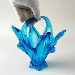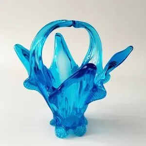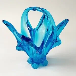 Chalet Glass Blue Freeform Collectible 7.5-inch | MCM Hand Blown Art Glass