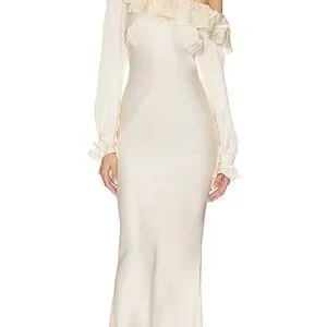 Stone Cold Fox Vicious Dress Off-Shoulder Ruffle Satin Evening Dress in Cream