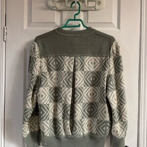 Sage Green & Cream Geometric Button-Up Cardigan Sweater
