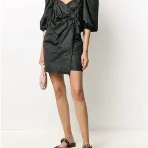 Red Valentino Black Puff-Sleeve Mini Dress with Bow Front