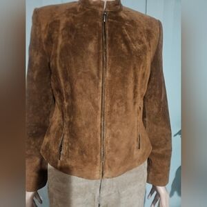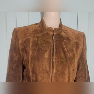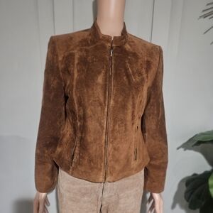 Timeless vintage Valerie Stevens 100% suede leather jacket in a rich warm brown tone — one of the most sought-after styles right now.