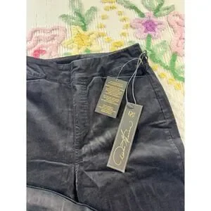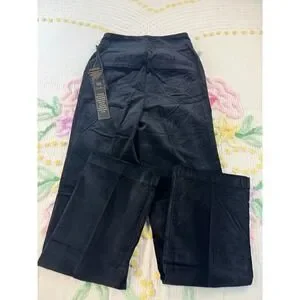 DG2 Diane Gilman Black Velvet Moleskin Wide Leg Trousers Pants Size 8 NWT