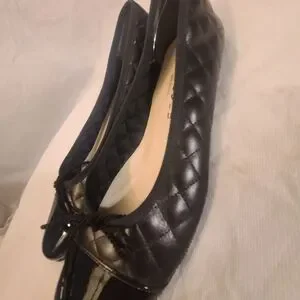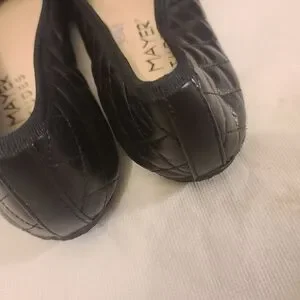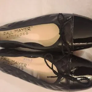 Paul Mayer Black Quilted Ballet Flats with Patent Cap Toe