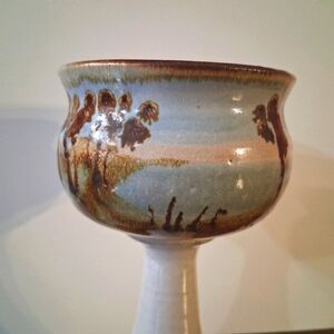 Signed Bonnie Staffel Pottery Chalice Goblet Wine Tropical Seascape Ocean Sunset or Sunrise
