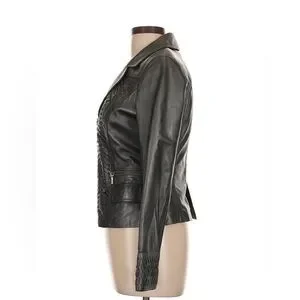 Vintage Cache Black Leather Jacket Full Zip 90s Y2k Soft Women’s 10 Short Fitted
