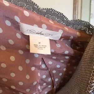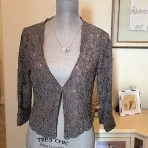 This jacket is lightweight and so classy on. Gorgeous eggplant color. Fully lined with pink polka poly that feel like silk. 3/4 sleeves with hidden hook to wear it close or casual dress up with Jean.