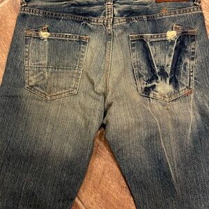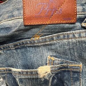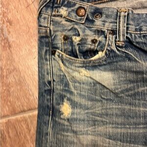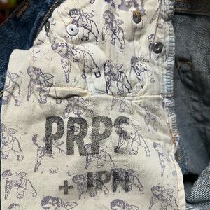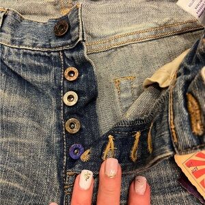 Sz 27 Prps Bermuda shorts New!! These are very cute. I like that the denium is different colors and looks vintage. Has funky stains and rips!! The buttons are Awesome!! All different colors!!